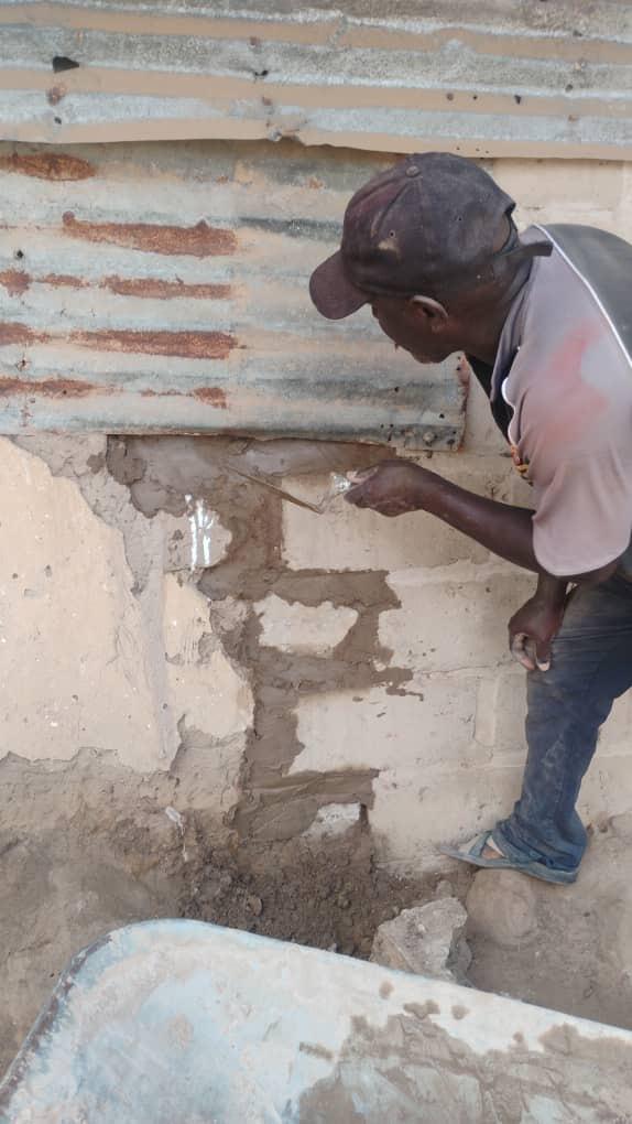 Als erstes war uns wichtig das das Dach repariert wird und die Außentoilette wind- und wetterfest gemacht wird. Dieses insbesondere da die Regenzeit bevorstand. Weiter wurden die Löcher in den Außenwänden verschlossen und die Statik des Daches verbessert.